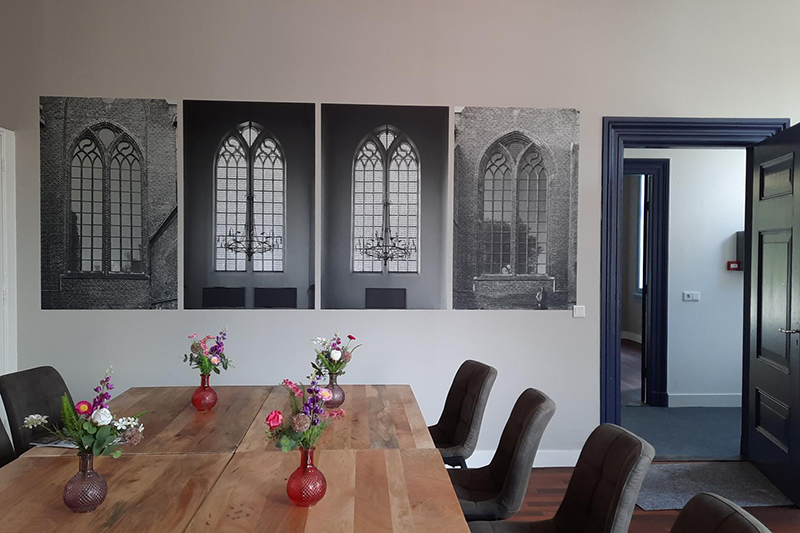 In Vianen is de oude pastorie geheel gerenoveerd, om anno 2025, een modern diaconaal centrum te kunnen zijn. Voor een muur van 3x7 m heb ik een fotobehang mogen ontwerpen. Te zien zijn 2 kerkramen van de Grote Kerk, gefotografeerd aan de buitenkant en aan de binnenkant. Daarmee symboliserend dat de protestantse gemeente niet [...]